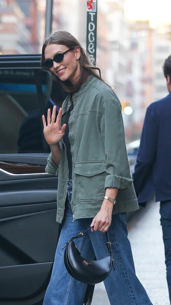 Присматриваемся к новому образу Карли Клосс и изучаем, какие тренды актуальны прямо сейчас. Так, наш взгляд упал на стильные черные ботильоны из матовой кожи — у них маленький каблук и острый мыс. Их звезда подобрала к классическими джинсам прямого кроя с безупречной посадкой — такие точно никогда не пикнут моду. Карли предпочитает минимализм и простоту, поэтому за основу выхода взяла черный бадлон и куртку.