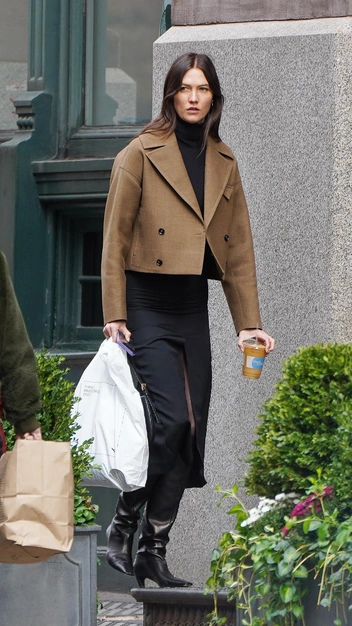 Как подчеркнуть талию и бедра с помощью одного жакета — на личном примере показала Карли Клосс. Знаменитость отправилась на прогулку с супругом в эффектном облегающем платье с высоким разрезом и дополнила черный наряд укороченным пиджаком, который визуально делит тело, удлиняя ноги и вытягивая силуэт. Модный выход знаменитость завершила трендовыми сапогами до колена и лаконичной сумкой.