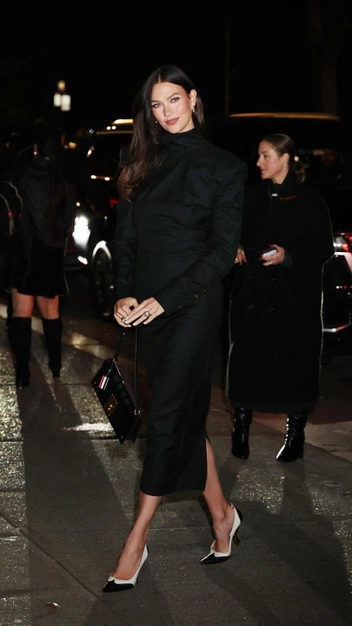 Черное платье — классика женского гардероба, однако и такой предмет одежды нужно уметь носить. Карли Клосс выбрала для себя футлярную модель, декорированную пуговицами, в длине миди с невысоким разрезом и воротом. Сексуальный образ она дополнила акцентными туфлями, которые его разнообразили: выбор селебрити пал на лодочки в контрастном черно-белом цвете. Завершением вечернего наряда стали сумка-багет и изящные серьги.