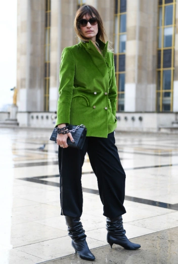 Неделя моды в Париже все еще идет и дарит новые и новые вдохновляющие стритстайл-образы. В этот раз в объектив попал аутфит Каролин де Мегрэ, французской модели и музыкального продюсера. Для показа Haider Hackermann осень/зима 2019-2020 она предпочла костюм, состоявший из эффектного жакета насыщенного травяного оттенка, черных сапог с kitten heel и заправленных в них объемных брюк. На наш взгляд, прямо-таки по-французски изящно