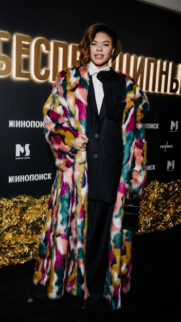 На мероприятие прибыли самые модные девушки, которые продемонстрировали отличное чувство стиля и хороший вкус. Эффектный образ показала спортсменка Катерина Кейру: она отдала предпочтение безупречному черному брючному костюму. К нему знаменитость подобрала белоснежную рубашку, галстук-бант и завершила вечерний образ трендовой разноцветной шубой в длине макси.
