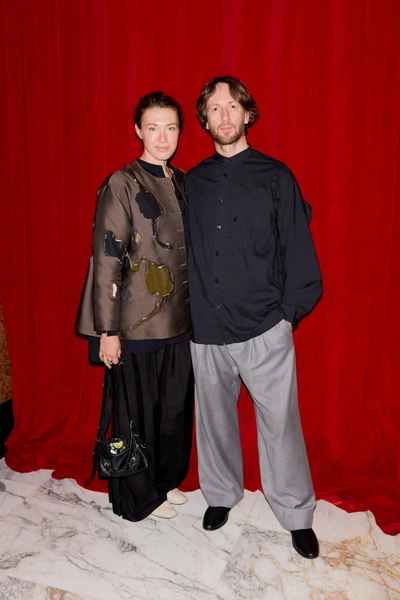 На мероприятии гости показали ультрамодные образы, которые нам не терпится повторить. Например, Катя Голден продемонстрировала актуальный стайлинг-трюк и надела черные гольфы. Их она подобрала к приталенному жакету и кожаной юбке.