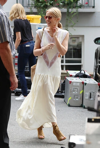 Совсем недавно 50-летняя Кайли Миноуг анонсировала свой новый тур, получивший название Golden: в ноябре и декабре певица посетит Францию, Бельгию, Швейцарию и другие европейские страны. Пока концерты Миноуг — все еще будущее, певица наслаждается летом в Лондоне, где ее в симпатичном белом летнем платье запечатлели 23 июля.
