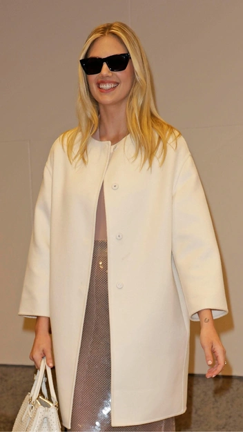 Пайетки продолжают возглавлять тренды весенне-летнего сезона, но как их носить, чтобы выглядеть дорого и стильно? Модный образ получилось создать у Кейт Аптон. Звезда дополнила блестящую юбку-карандаш на высокой посадке бежевым боди и в качестве верхней одежды выбрала укороченное белое пальто с круглым вырезом. Не могли мы и не обратить внимание на трендовые туфли с квадратным мысом, которые безупречно завершили выход.