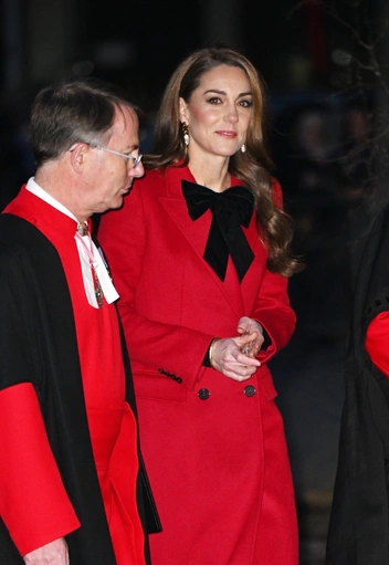 Каждый год принцесса Уэльская устраивает рождественский концерт в Вестминстерском аббатстве, куда приглашает детей из социальных центров и подопечных благотворительных организаций. В 2024 году Кейт Миддлтон решила не пропускать праздник, несмотря на недавнее прекращение химиотерапии, и выглядела сногсшибательно. Так, на Кэтрин было яркое алое пальто Alexander McQueen с черным бархатным бантом, который перекликался с сапогами на высоком каблуке. Выход завершили серьги с жемчугом и фирменная укладка принцессы с крупными локонами.