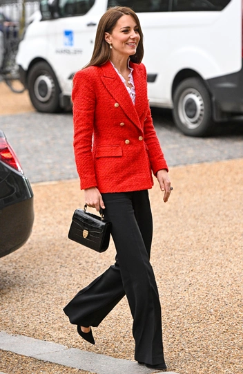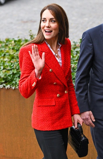 Кейт Миддлтон отправилась в двухдневный мини-тур в Копенгаген для продвижения деятельности Центра раннего детства при Королевском фонде, который является ее детищем. В первый день визита Ее Высочество встретилась с представителями проекта по охране психического здоровья младенцев и подобрала для этого случая эффектный лук. На публике Кейт появилась в ярко-красном блейзере Zara (всего за 60 фунтов, или 7 000 рублей) и белой блузе (повторив гамму датского флага), классических черных брюках и замшевых туфлях-лодочках в тон. Аутфит дополнили мини-сумка Aspinal of London и украшения, созданные датским ювелиром, Марией Блэк.