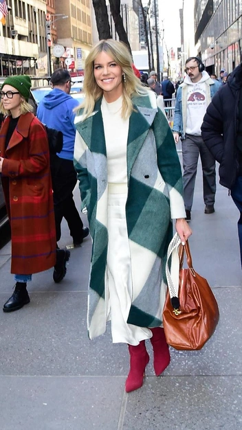 Кейтлин Олсон появилась на улицах Нью-Йорка в безупречном образе, повторить который сможет каждая женщина. Знаменитая актриса надела белоснежный пуловер и подобрала к нему атласную юбку длиной миди. Аутфит она дополнила модным пальто прямого кроя, остроносыми ботильонами в бордовом цвете и большой бесформенной сумкой в винтажном стиле.