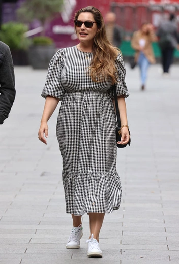 Знаменитости уже готовят свой гардероб к наступающему сезону и сменяют легкие образы на более плотные фактуры . Модель и актриса Келли Брук доказывает: платьям есть место даже в гардеробе для холодов. Главное –правильно подобрать фасон. Накануне звезда показала идеальный вариант для гардероба plus size – легкое платье, расклешенное от груди с юбкой-солнце и пышными рукавами, которое девушка решила сочетать с белыми кроссовками и миниатюрной сумкой Bottega Veneta.