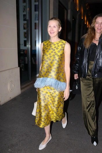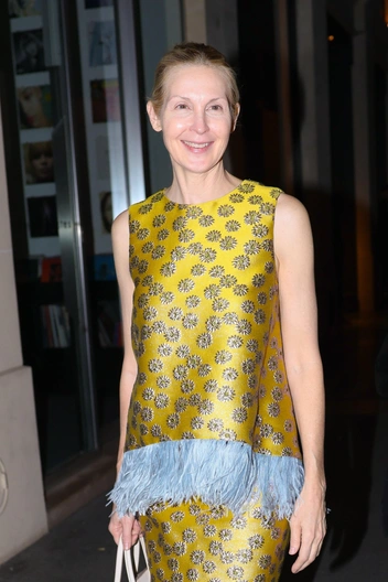 Келли Разерфорд доказывает, что можно быть роскошной и без макияжа: вся драма здесь происходит в аутфите, а не на лице. Желтый жаккардовый комплект с голубой бахромой выглядит как вечерний арт‑объект, поэтому актриса спокойно позволяет себе «чистое» лицо, собранные волосы и минималистичные белые балетки. В итоге образ читается не как попытка омолодиться или «перекричать» наряд макияжем, а как уверенное заявление женщины, которая знает: ее главное украшение — светящаяся кожа и осанка, а не лишний слой хайлайтера.