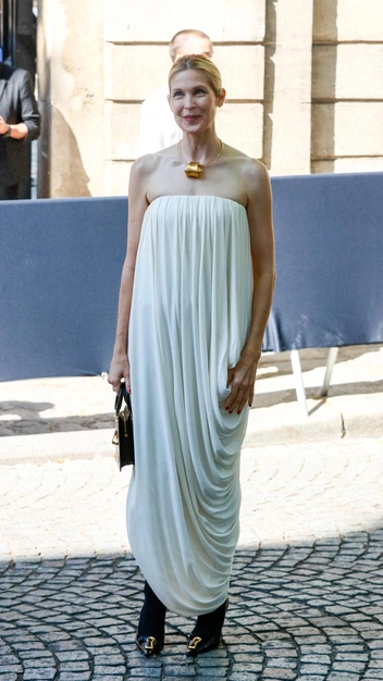 «Тихая роскошь» — любимый стиль Келли Разерфорд, который она, к слову, и прославила. Если вы смотрели сериал «Сплетница», то помните маму главной героини — именно ее и сыграла актриса. Звезда продолжает отдавать предпочтение гардеробу своей героини и показывает old money образы. На шоу Schiaparelli она прибыла в тотал-луке бренда: изящное платье, необычные туфли, маленькая сумка и массивное колье.