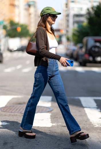 В межсезонье супермодель Кенндалл Дженнер удачно миксует элементы базового гардероба и получает аутфиты, которые легко вписываются как в летний, так и в осенний стритстайл. Для бранча в центре Нью-Йорка звезда подиумов делает ставку на классику casual-стиля, адаптируя ее под собственный вкус и аутентичный стиль. Знаменитость комбинирует джинсы, базовую майку и легкую накидку с флип-флопами на платформе и коричневой сумкой на одно плечо. Кендалл дополняет лук бейсболкой и солнцезащитными очками, с которыми она не расстается в любой сезон.