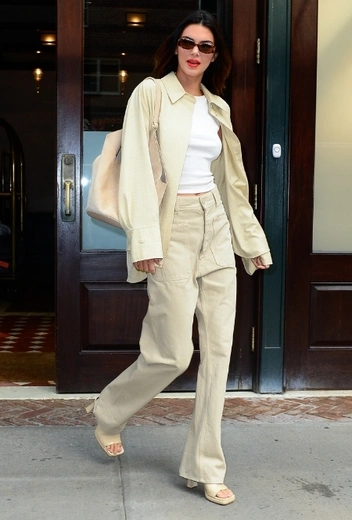 Что касается монохромных луков, то тут представительницам клана Дженнер-Кардашьян просто нет равных. В рамках Недели моды в Нью-Йорке особенный тон городскому стритстайлу задает Кендалл Дженнер, которая является одной из самых высокооплачиваемых супермоделей современности и популярных девушек своей семьи. Осенний стритстайл Кендалл украшает почти летним луком в тотальном белом, выбирая его нестандартное прочтение. Знаменитость выгуливает брючную комбинацию в белом и кремовом оттенках в лаконичном стиле, которую дополняют мюли, сумка-тоут в тон и солнцезащитные очки.