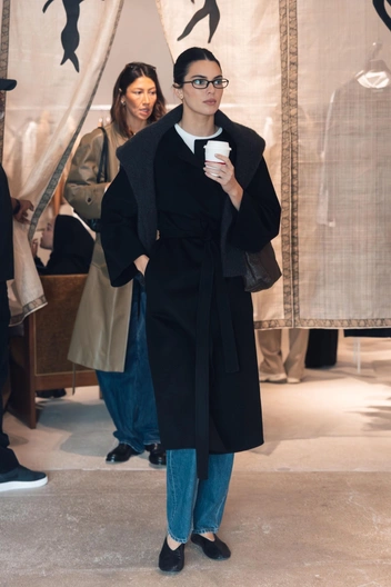 Кендалл Дженнер долго одевалась в духе роскошного минимализма, и это дало свои плоды — модель стала одним из друзей элитарного бренда The Row, а недавно даже посетила их бутик в Париже. Дженнер показала аутфит в духе стильной многослойности, накинув кашемировый джемпер поверх пальто, и завершив ансамбль белой футболкой. Выход дополнили кожаные мюли от The Row и джинсы фасона mom.