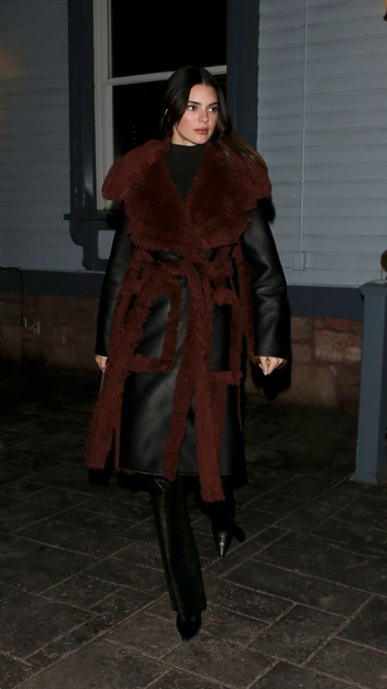 Кендалл Дженнер продолжает «модный тур» по Аспену и появляется в еще одном стильном образе, которой точно нужно взять на заметку. Знаменитость надела черный бадлон, расклешенные кожаные брюки и сапоги с острым мысом. Завершением стала объемная дубленка с меховой отделкой, в которую укуталась Кендалл. Дополнила она образ мини-сумкой в бордовом оттенке.