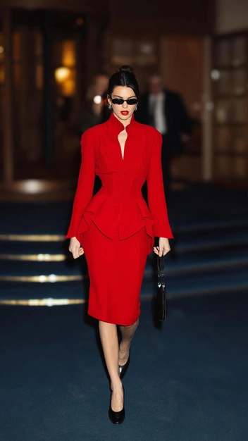 Многим пришлась по душе работа Кендалл Дженнер со стилистом Дани Мишель: звезда еще в прошлом году начала повторять тренд на «тихую роскошь», который плавно перетек в mob wife. Она примерила безупречный красный костюм, состоящий из приталенного жакета корсетной формы и юбки-карандаш до колена. К нему топ-модель подобрала лакированные туфли, сумку-папку, очки и серьги, блеск которых виден издалека.