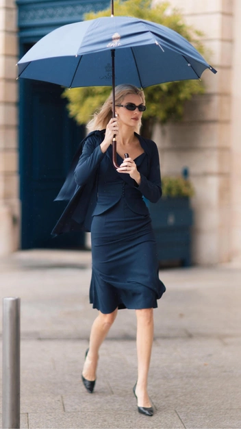 Кендалл Дженнер продолжает держать курс на женственные образы и восхищать своих поклонников. Так, недавно селебрити была замечена в темно-синем тотал-луке, для которого она выбрала платье-футляр длиной до колена, верх которого напоминает приталенный жакет в стиле ретро. Интересная деталь наряда — шаль, что крепится к плечу. Завершили элегантный образ остроносые балетки, узкие очки и украшения.