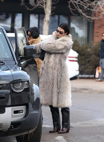 Шубы из эко-меха не выходят из моды, и Кендалл Дженнер решила одеться в стиле mob wife. Она подобрала меховое пальто средней длины светло-серого цвета, с которым сочетала кожаные брюки и классическую белую футболку. Завершение образа — темно-коричневые казаки из лакированной кожи и солнцезащитные очки в узкой оправе.