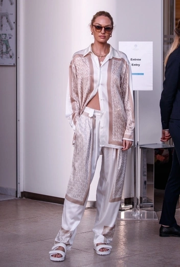 Каннский кинофестиваль традиционно становится местом, в котором разыгрывается настоящая фэшн-схватка модных инфлюенсеров, звезд большого экрана и дизайнеров, одевающих их в трендовые образы от и до. Впрочем, среди селебрити есть и те, которые предпочитают не погружаться в модную гонку с головой и оставлять себе возможность выгулять любимые комфортные аутфиты, которые смотрятся ничуть не хуже пышных нарядов с красной дорожки. Южноафриканская модель Кэндис Свейнпол штурмует звездную фэшн-хронику в шелковой брючной комбинации в пижамном стиле — легко и непринужденно, как и подобает настоящей иконе стиля. Знаменитость дополняет лук белыми сандалиями, коричневыми солнцезащитными очками и массивными золотыми украшениями.