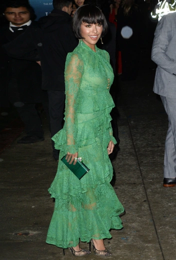 Трендовые бахрома и рюши переживают свой ренессанс и требуют отдельного искусства для того, чтобы носить их свежо и со вкусом. И образ Кэт нежно-зеленого оттенка — как раз про это.