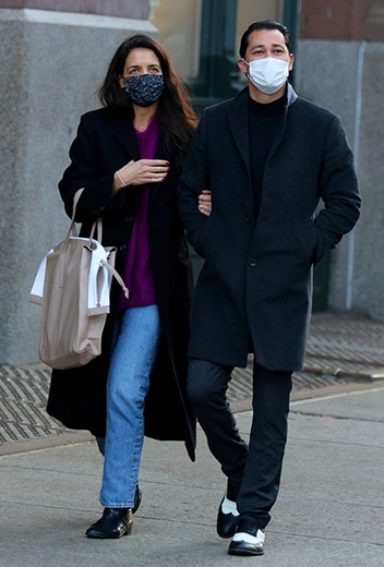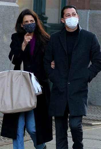 Прошедший год явно прошел для Кэти Холмс удачно. Ее роман с Эмилио Витоло бурно обсуждался публикой, а влюбленные, кажется, только рады повышенному вниманию и совсем не хотят скрывать чувств. Недавно папарацци вновь заметили пару на прогулке. Кэти выбрала уютный свитер насыщенного фиолетового цвета, базовые джинсы, удлиненное пальто и ботильоны на низком каблуке, а ее избранник сделал ставку на классику и примерил сдержанный тотал-лук в темных оттенках.