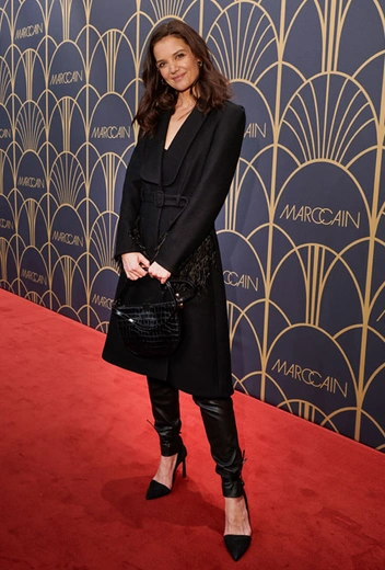 Хотя Кэти Холмс в первую очередь известна миру как актриса, с модой ее тоже связывает немало. Последнее время фешн-обозреватели с особым интересом следят за ее стилем, а сама Кэти с удовольствием посещает fashion-мероприятия. Так, на днях актрису заметили на показе осенне-зимней коллекции Marc Cain 2020 в Берлине. Для события Холмс выбрала черный тотал-лук: жакет из новой коллекции, украшенный перьями, кожаные брюки и классические лодочки.