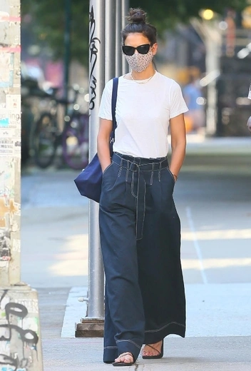 Кэти Холмс — одна из главных «законодательниц» стритстайла Нью-Йорка. По крайней мере в том, что касается повседневных образов. Актриса всегда предпочитает универсальные расслабленные модели одежды, когда выбор стоит между ними и трендовыми, но не слишком практичными вещами. На днях знаменитость выгуляла очередной стильный casual-образ с участием любимых элементов гардероба: экс-супруга Тома Круза примерила классическую комбинацию с участием белой майки, легких джинсовых брюк палаццо с открытым кроем и черных сандалий. Аутфит актрисы дополнили солнцезащитные очки и синяя объемная сумка на одно плечо.