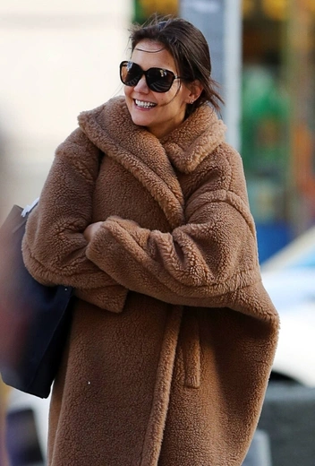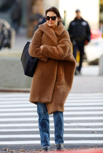 Плюшевое пальто не уходит из топа трендовой повестки уже который год. Учитывая явный эко-настрой большинства современных дизайнеров, эта позиция останется без изменений еще долго, как и тренд на шубы из искусственного меха. В нашей географической полосе отказаться от натурального меха и перейти на плюш — не самый простой шаг, но, возможно, этот стильный выход Кэти Холмс вдохновит вас настолько, насколько это возможно, чтобы убрать шубу в закрома гардероба и перейти на европейский формат зимних аутфитов.