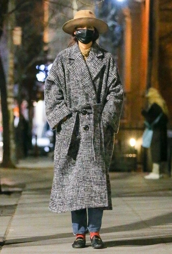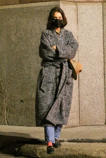 Что касается городского casual, тут Кэти всегда отдает предпочтение разным моделям пальто и почти никогда не примеряет пуховики и другие вещи, классические для зимнего гардероба. В арсенале экс-супруги Тома Круза есть большое количество пальто самых разных фасонов и кроя, которые она умеет стильно сочетать с любимыми атуфитами. На днях знаменитость продемонстрировала очередного фаворита: звезда выгуляла утепленное черно-серое пальто вместе с джинсами и черными лоферами с ярко-розовыми носками — оригинальный фэшн-прием, чтобы сделать повседневный лук интереснее и колоритнее.