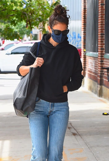 Кэти Холмс – преданная поклонница стиля минимализм. Хотя на ковровой дорожке она нередко примеряет впечатляющие вечерние наряды, в повседневной жизни актриса предпочитает сдержанные и максимально простые аутфиты, на составление которых не потребуется много времени. В этом ей помогает базовый набор вещей прямого кроя – оверсайз-худи, свободные джинсы, объемный шопер и сандалии.