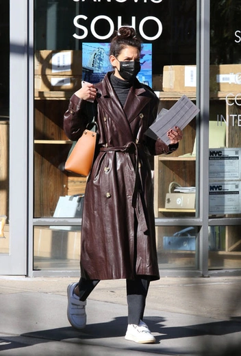 Многие современные инфлюенсеры помнят 90-е только по фото, в то время как актриса Кэти Холмс сама вдохновляла модную общественность своими образами 30 лет назад и остается примером для подражания до сих пор. В этом сезоне она сама решила пересмотреть свой гардероб ушедшей эпохи и выцепить самые интересные вещи, которые вновь стали актуальными. Среди них – кожаные тренчи и пальто, которые в этом сезоне бьют все рекорды популярности. Кэти выбрала модель в благородном коричнево-бордовом оттенке, которую дополнила водолазкой, классическими брюками и базовыми кроссовками.
