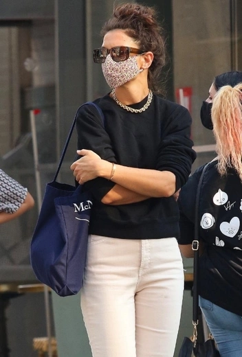 Стиль Кэти Холмс — один из самых универсальных и общелюбимых в Нью-Йорке. И несмотря на то, что экс-супруга Тома Круза уже давно не значится в первых строчках самых востребованных голливудских селебрити, она продолжает удерживать за собой статус иконы стиля модной столицы США. На днях актриса выгуляла очередной стильный фэшн-лук, который стал одним из самых ярких стритстайл-образов последних дней. Кэти продемонстрировала лаконичное сочетание, которое составили черный джемпер, укороченные кремовые брюки и белые полуспортивные кроссовки. Аутфит дополнили коричневые солнцезащитные очки, массивная цепь в качестве ожерелья и синий шопер.