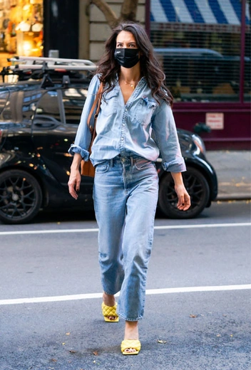 Хотя Кэти Холмс обожает актуальные тренды, ее гардероб – настоящее пособие по вневременному стилю. Актриса с успехом составляет универсальные и функциональные и при этом всегда попадает в ключевые тенденции сезона. На этот раз она решила поэкспериментировать с денимом: Кэти примерила рубашку с закатанными рукавами, джинсы в тон и завершила образ карамельной сумкой и лимонными мюлями от Bottega Veneta.