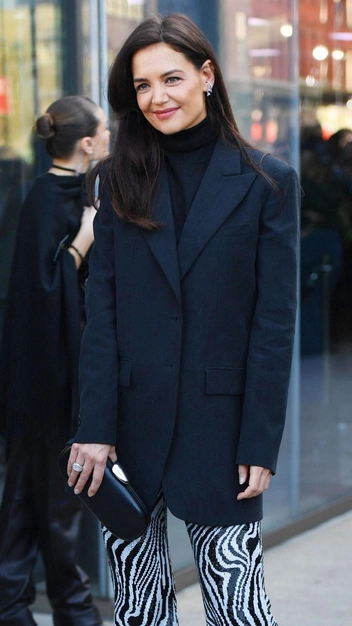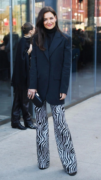 Кэти Холмс прибыла на показ Michael Kors в модном аутфите, который отличается простотой и одновременно стилем. Актриса надела черный бадлон, лаконичный пиджак из плотного материала и невероятные расклешенные брюки с принтом зебры, который в 2023 году вновь набирает популярность. Завершила знаменитость модный выход кожаным клатчем, босоножками и серебряными украшениями.