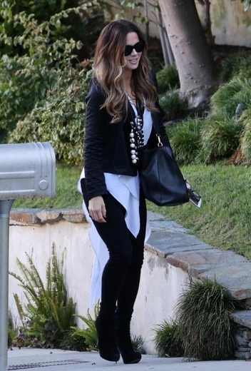 С того момента, как звезда «Другого мира» начала встречаться с начинающим музыкантом Гуди Грейсом, интерес поклонников к Кейт разгорелся не на шутку. Многие пророчат возлюбленным скорое расставание (Кейт старше своей новой пассии на 24 года), но большинство желают своей любимице только счастья и рады видеть красотку счастливой. Кроме того, знаменитость продолжает радовать поклонников особенно стильными фэшн-луками, для которых Кейт чаще всего выбирает черно-белую гамму. На днях она продемонстировала романтичную версию black&white, которая подойдет как для свидания, так и для обычной прогулки по городу. Бекинсейл примерила черные обтягивающие джинсы, белую блузу, кожанку и черные замшевые сапоги на высоком каблуке. Образ дополнили черные солнцезащитные очки и объемная вместительная сумка.