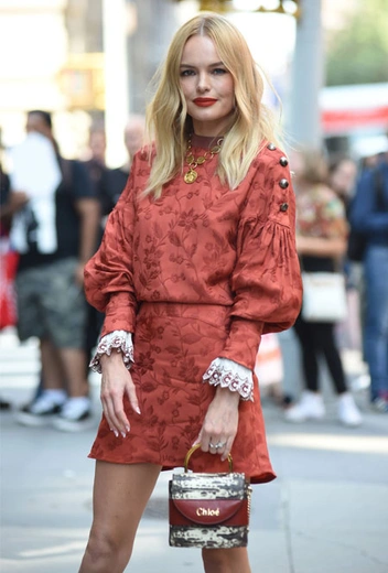 У актрисы начался особенно насыщенный период: сейчас она презентует новую работу – 12 сентября состоялась премьера сериала Земля I (The I-Land) от Netflix. Для Кейт такой насыщенный график - не только повод рассказать публике о новой актерской работе, но и напомнить, что она вполне может претендовать на статус современной иконы стиля. Новый образ, который она показала накануне премьеры, был полностью составлен из хитов Chloé: Босуорт примерила жаккардовое мини-платье кирпичного оттенка, ботильоны на устойчивом каблуке с фактурой под крокодиловую кожу и миниатюрную сумочку из новой коллекции.