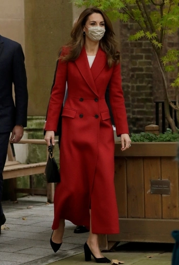 Кейт Миддлтон и принц Уильям встретились с участниками фотопроекта Hold Still, посвященного периоду карантина и пандемии коронавируса. Их Высочества пообщались с героями проекта на станции Ватерлоо и посетили больницу Святого Варфоломея. Концепция Hold Still принадлежит самой герцогине: она реализовала ее совместно с Национальной портретной галереей, которая входит в список патронажей Ее Высочества. Для публичного мероприятия она подобрала классическое красное пальто макси от любимого Alexander McQueen, черные туфли-лодочки и мини-сумку Grace Han.