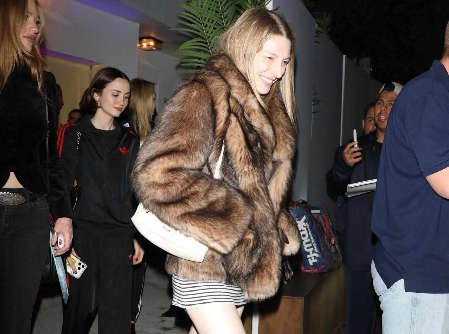 Хантер Шафер покорила всех, покидая вечеринку в Лос-Анджелесе в роскошной меховой шубе, короткой юбке и грубых черных ботинках. Модель создала выразительный образ, в котором сочетаются изысканная элегантность и голливудский шик. Ее аутфит сыграл на контрастах: теплый пушистый мех легко сочетается с обнаженными ногами в мини-юбке, а массивные ботинки придают луку динамичность и актуальную «неряшливую» эстетику. Выбор минималистичных аксессуаров позволил сохранить акцент на главных деталях — шубе и обуви.