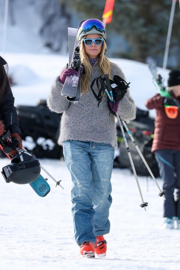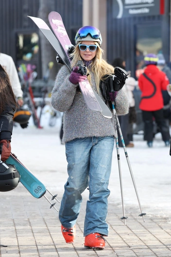 Пока остальные знаменитости отдыхают в городе, Хейди с мужем и дочерью Лени отправилась покорять горы. Для катания на лыжах модель предпочла светлые джинсы и объемный свитер оттенка меланж. Выход завершил новый фаворит модели — солнцезащитные очки в голубой оправе.