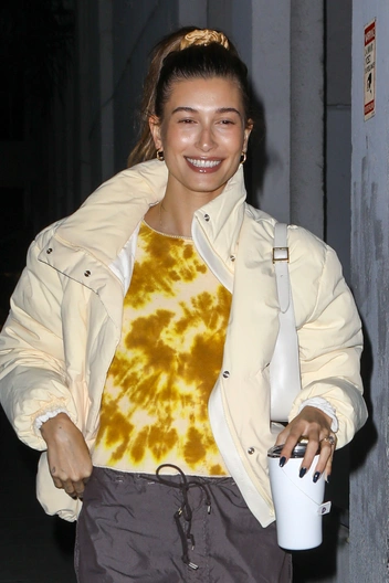 Порой одна деталь в образе может творить чудеса преображения — придавать вполне рядовому луку нестандартное звучание и адаптировать его под самые разные жизненные ситуации. Хейли Бибер добивается нужного эффекта, включая в аутфит вещь с абстрактным принтом: знаменитость примеряет комбинацию с безразмерными серыми брюками, дутой укороченной курткой Moncler, дополняя лук верхом в желтом абстрактном принте и темными кроссовками.