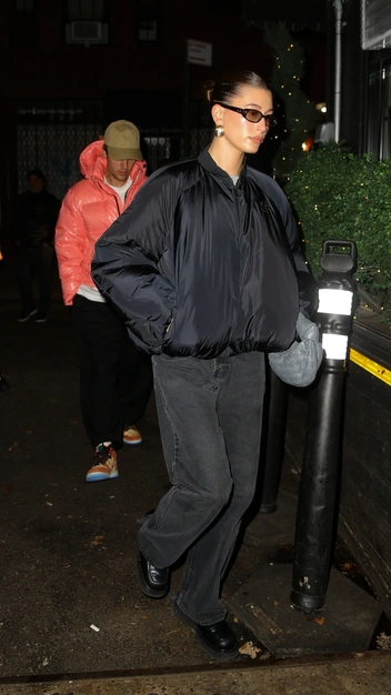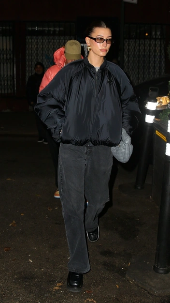 В руки Хейли Бибер попадают самые трендовые вещи, и одна из них — бомбер, который стал главным модным предметом в гардеробе всех девушек. Он будет актуален и в следующем сезоне, поэтому учимся его стилизации у Бибер. Знаменитость надела под оверсайз куртку серую футболку, дополнила лук широкими черными джинсами и грубыми ботинками. Еще один аксессуар — серая сумка Bottega Veneta, с которой Хейли не расстается последние дни.