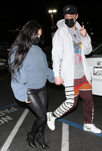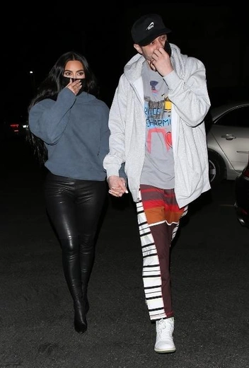 С того момента, как стало известно об отношениях Ким и Пита, прошло уже достаточно времени, но многие поклонники до сих пор относятся к этому дуэту с некоторой настороженностью: поговаривали, что это роман — не что иное, как очередной пиар-ходу американской бизнесвумен. Однако последние романтические встречи парочки скорее говорят об обратном. На днях фотографы застали Ким и Пита после ужина в одном из ресторанов в Беверли-Хиллз: влюбленные нежно обнимались и не могли оторваться друг от друга. Для очередной вечерней вылазки они подобрали расслабленные аутфиты и предпочли не координировать луки. Ким выгуляла сочетание кожаных брюк и свободного серого пуловера, а Пит примерил полуспортивный образ с кроссовками и бейсболкой.