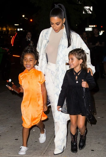 Ким с пятилетней дочкой и племянницей решили совершить дефиле в районе нью-йоркского SoHo. Казаки, оранжевый неон — все, как тренды прописали. Вряд ли могут быть сомнения в том, что через пять-семь лет юные члены семейства Кардашян примут инфлюенсерскую эстафету от своих родителей.