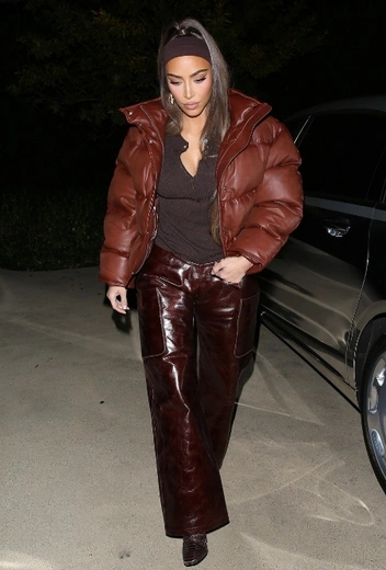 На днях стало известно, что Ким Кардашьян и Канье Уэст все-таки решили разводиться после многих лет семейной жизни: инсайдеры рассказывают, что бизнесвумен уже наняла звездного адвоката по разводам Лауру Уэссер для урегулирования всех бракоразводных вопросов. Однако, несмотря на сложные времена, самая популярная дива из семейства Кардашьян не теряет рабочего настроя и демонстрирует высококлассный стритстайл в разгар многочисленных слухов. Ким примеряет модный аутфит в коричневых оттенках, эффектно комбинируя трикотаж и кожу в одном луке. Звезда дополняет образ макияжем в нюдовых тонах и широкой повязкой на голову.