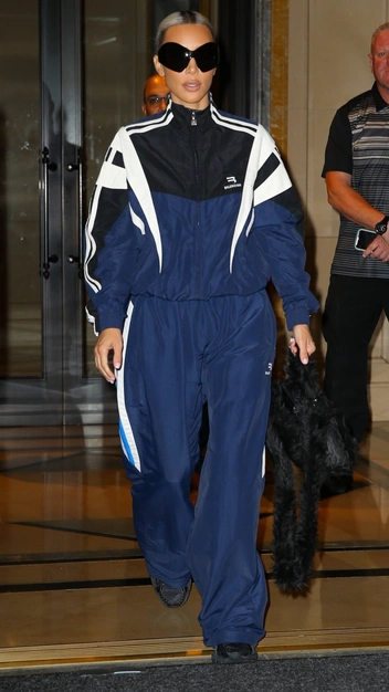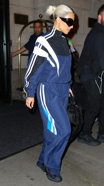 Ким Кардашьян уверенно возвращает в свой гардероб многие составляющие моды нулевых и девяностых. Например, недавно селебрити надела спортивный костюм с мужского плеча, популярный в прошлую эпоху. Ким дополнила образ кроссовками и любимыми очками в футуристичном стиле.