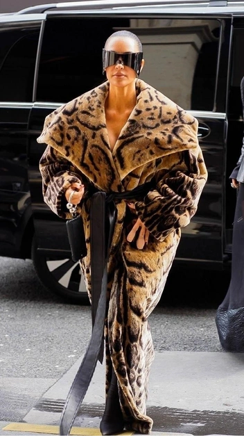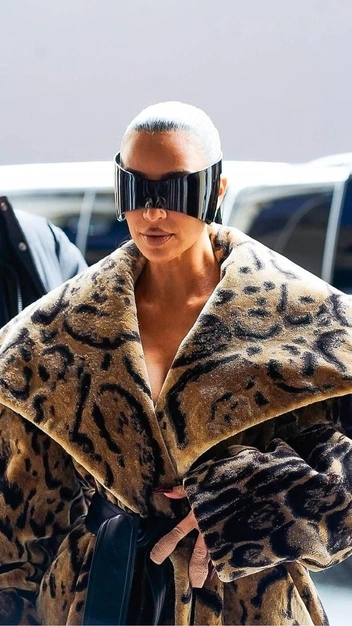 Ким Кардашьян появилась в Париже в самом настоящем образе светской львицы, который она собрала по всем канонам богатых женщин. Знаменитость надела соблазнительный костюм с откровенным декольте, поверх которого завязала бесподобную шубу в длине макси, подчеркнув ее кожаным ремнем. Однако все наше внимание приковано к безупречным футуристическим очкам, напоминающим маску или шлем. Таким аксессуаром селебрити напомнила нам, как важны в этом сезоне очки.