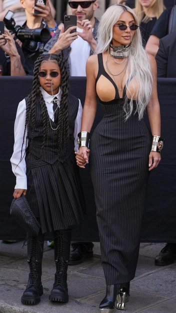 В Париже во всю проходит кутюрная Неделя моды, на которую съехались звезды А-листа. Конечно, списки почетных приглашенных возглавляет Ким Кардашьян. На показ Оливье Рустена для Jean Paul Gaultier Ким пришла в платье из новой коллекции модного Дома. Архитектурный крой наряда подчеркнул узкую талию знаменитости, которая отчаянно худела для платья Мэрилин Монро на Met Gala. К наряду на парижской Неделе моды звезда добавила крупные браслеты на обе руки, необычные украшения с пирсингом в носу и узкие солнцезащитные очки.