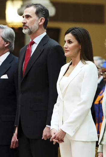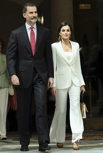 3 мая в мадридской резиденции Эль-Пардо прошла презенатция большого проекта — электронного биографического словаря. Главными гостями вечера стали король и королева Испании — Фелипе VI и Летиция. Ее Величество вновь продемонстрировала идеальный вкус, появившись в брючном костюме светлого кремового оттенка: этот образ заслужил очень лестные отзывы в мировой прессе.