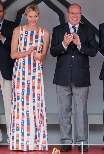 Вчера, 27 мая, в Монако вручали Гран-при в гоночных соревнованиях Формула 1. Гостями автогонок стали Альбер II и княгиня Шарлен: князь и княгиня Монако, разумеется, не могут пропустить столь важное событие для страны. Для «заезда» Ее Светлость облачилась в шелковое платье от Akris, весьма пикантно разлетавшееся от любого, даже самого маленького дуновения ветра.