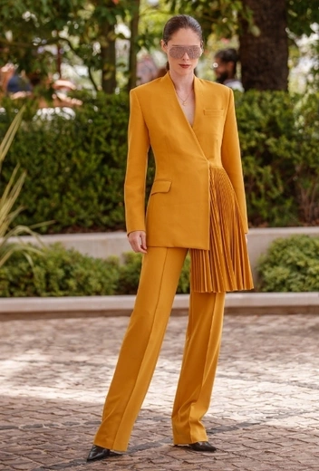 Если на мероприятии появляется канадская супермодель Коко Роша, градус стиля автоматически повышается. Знаменитость считается одной из самых влиятельных персон в мире моделинга и с легкостью становится самой модной гостьей на любой красной дорожке. На Каннском кинофестивале, который в этом году можно сравнить с внеочередной Неделей моды, Коко уж успела выгулять сразу несколько супер стильных луков, среди которых нам особенно приглянулся расслабленный брючный костюм с жакетом с бахромой в насыщенном горчичном оттенке. Роша стильно дополнила лук солнцезащитными очками с линзами в оттенке металлик и остроносыми черными туфлями на каблуке.