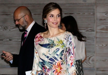 43-летняя королева Испании - признанная икона стиля. Летисия обладает практически безупречныым вкусом и ошибок в выборе гардероба она не допускает. На мероприятие, посвященное чествованию национальных модельеров и прочих деятелей модного бизнеса Летисия прибыла в шелковом платье-чехле с актуальным цветочным принтом. Образ она дополнила ярким клатчем цвета фуксии.